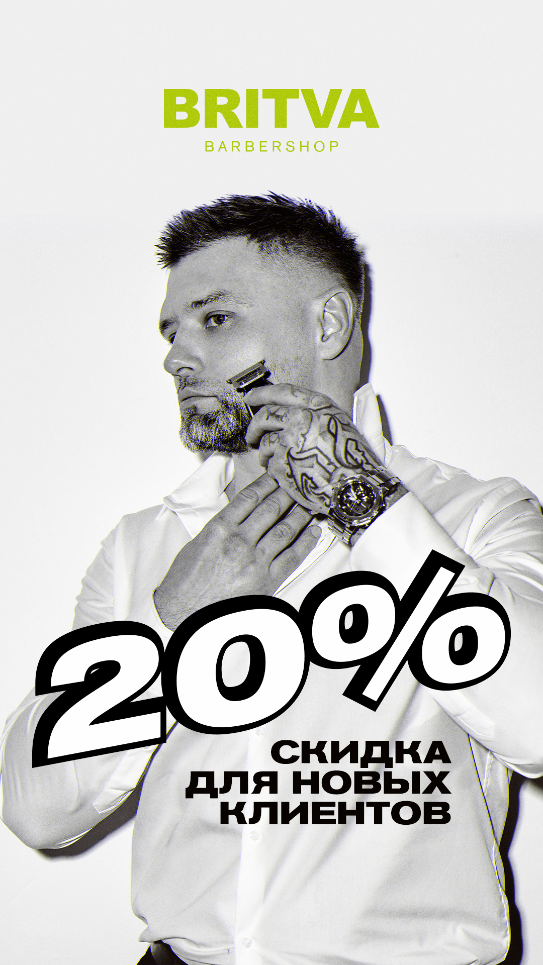 • Скидка 20% для НОВЫХ клиентов СЕТИ распространяется на одну услугу в чеке от 1000 рублей по промокоду БРИТВА2026.